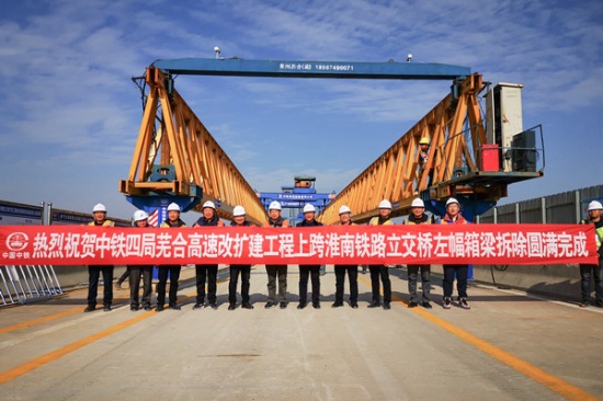 2020年12月30日,经过2天的紧张施工,由中铁四局四公司承建的G5011芜合高速公路芜湖至林头段上跨淮南铁路立交桥左幅铁路跨4片箱梁全部拆除完成,为芜合高速上跨淮南铁路立交改扩建工程早日完工奠定了坚实的基础。