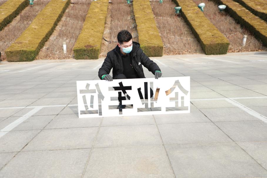 工作人员在设置企业车位 (青岛莱西市委宣传部 供图)