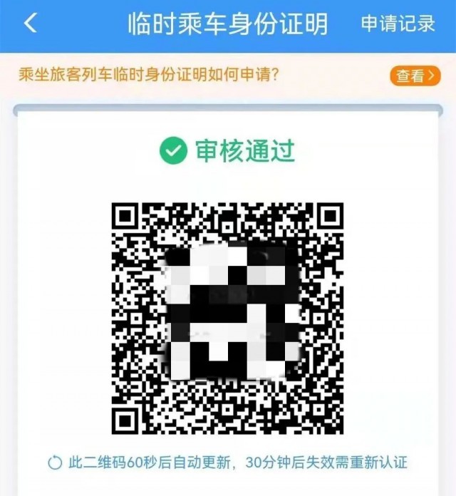 在电子临时乘车身份证明二维码使用页面,二维码60秒自动更新一次,可能因为网络原因,二维码未能及时更新,请点击二维码下方“刷新”按钮。