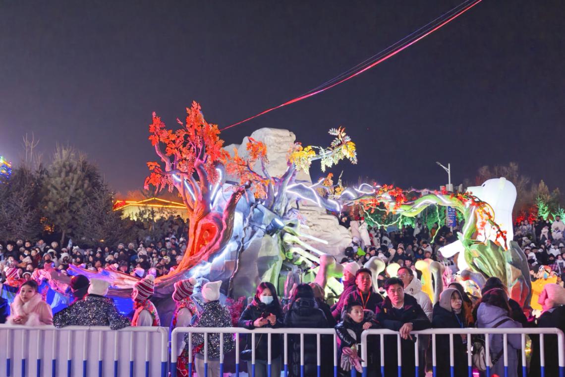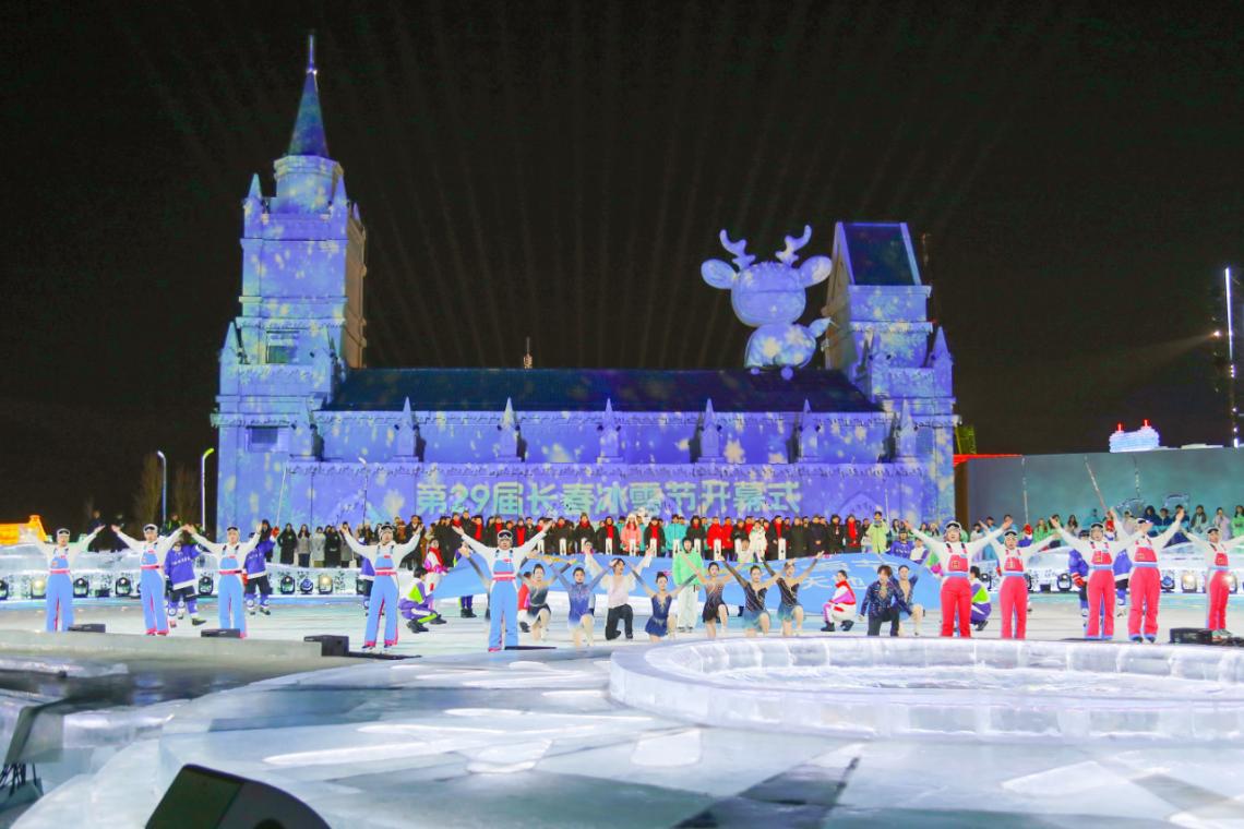 当晚,第七届长春冰雪新天地开园,以“冰雪福耀中华・民族大团结”为主题,156万平米园区内,巨型冰雪雕塑群气势恢宏,76万平米游乐空间含60余条冰雪滑梯、30多种游乐设施,满足不同游客需求。