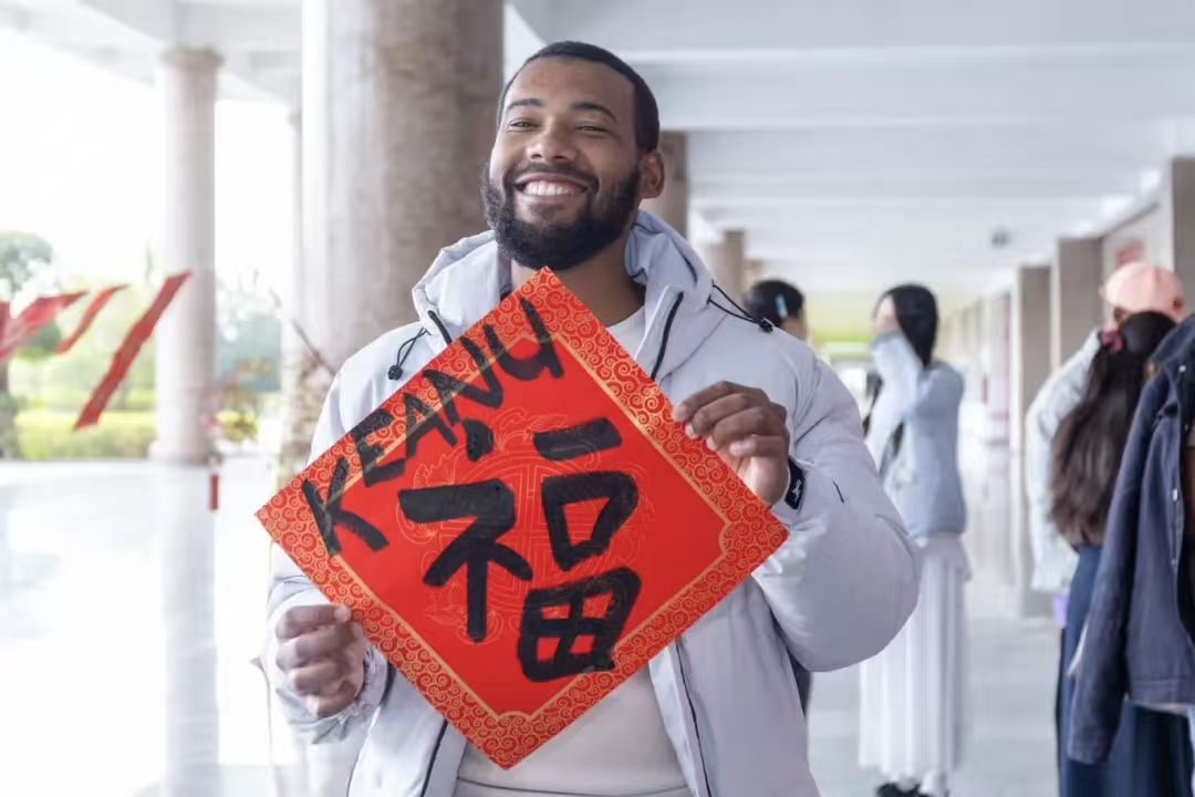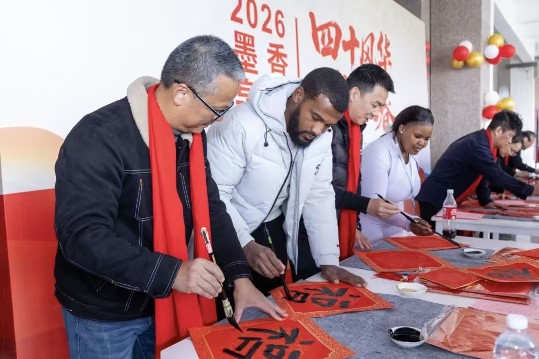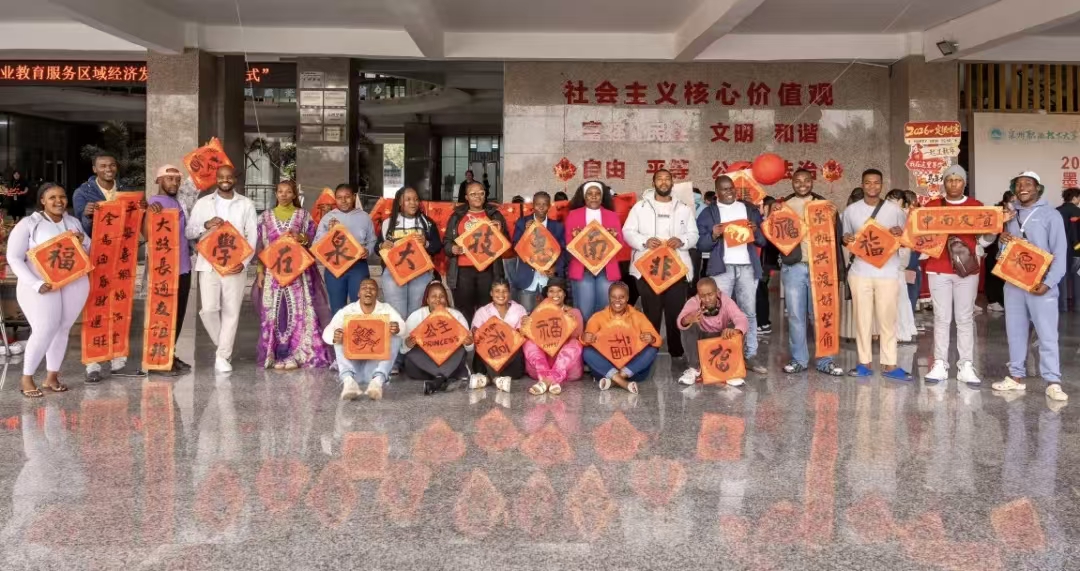 近日,泉州职业技术大学组织为全校师生送春联活动。完成来华学习开班仪式的29位南非青年企业家、留学生,也加入送春联队伍,他们在书法老师的指引下,饶有趣味地写下一个个大大的福字和春联,并署上自己的英文名字,与学校师生一起提前体会了浓郁的中国传统年味。