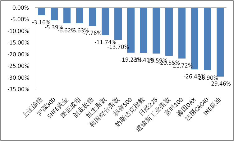 三月以来,,全球金融市场陷入了恐慌。美股在本月内经历了四次熔断,欧洲股市也普遍下跌。恐慌情绪不止体现在股市上,商品市场也同样遭遇了抛售,原油价格大幅下挫,而作为传统避险资产的黄金也失去了其避险功能。然而,A股市场却出现了另一番景象,我国A股在全球资产普遍下跌的同时展现出了一定的韧性,虽然受到全球资产价格暴跌的牵连,但跌幅甚至低于同期黄金涨跌幅,表现出了较好的抗跌性,这也侧面印证了我国经济基本面的韧性。因此,可以在当前国际市场风起云涌之际,跳出恐慌情绪的束缚,寻找合适的主题中长期布局。