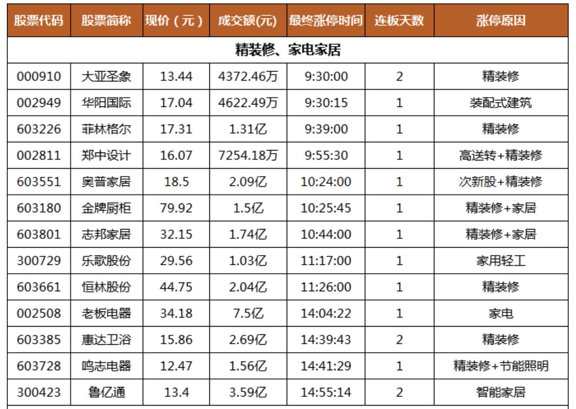 另一方面,追逐确定性成为机构较为一致的策略,而行业竞争格局向好、业绩持续兑现的精装产业链相关公司,成为机构近期布局的重点,包括防水、涂料、陶瓷等家装建材及家居装修领域等公司。