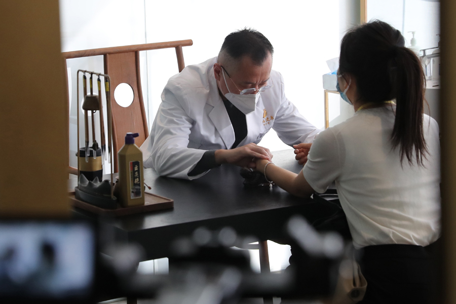 10月18日,记者体验中医把脉问诊。中国日报记者 王壮飞 摄