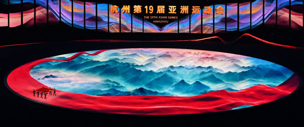 新华社杭州10月1日电 青山含黛,云海翻涌,一条红绸飞掠锦绣河山,铺就成脚下的路。在杭州奥体中心体育场中央,8名仪仗兵护卫着中华人民共和国国旗,踏着坚实的步伐向前进行。杭州第19届亚运会开幕式上的这一幕直击人心,映照出属于中国的浪漫与庄严。