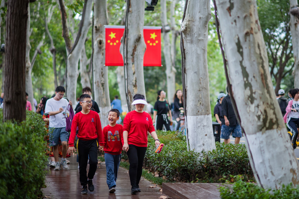 10月1日,游客在武汉市东湖景区游玩。新华社发(杜子璇摄)
