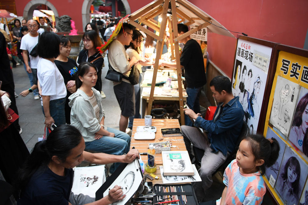 10月1日,游客在长沙市坡子街游玩。新华社记者 陈振海 摄