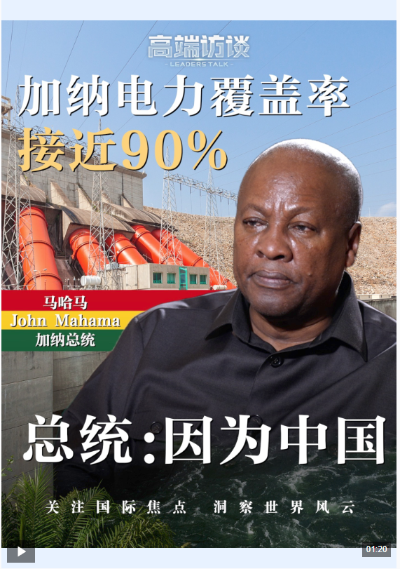 马哈马表示,中国在非洲基础设施发展进程中发挥了关键作用。在其他地区,中国企业修建了连通加纳城市的铁路,并且为加纳的农村电气化项目提供了资金支持。正因为中国的支持,如今加纳电力覆盖率接近90%,跻身非洲电力覆盖率最高国家之列。