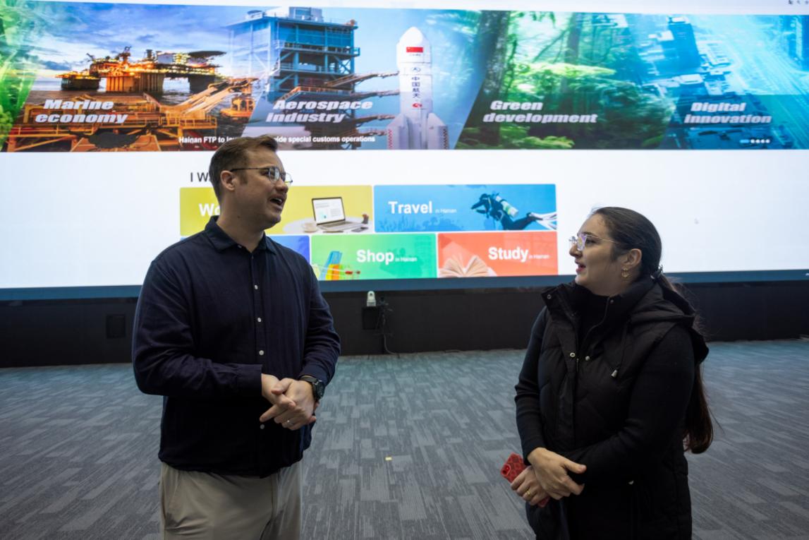 外籍人士在海南自由贸易港国际服务门户上线运行发布会现场交流