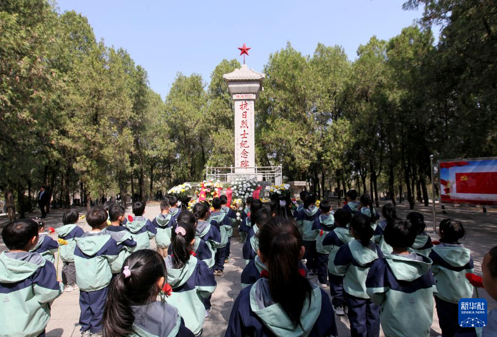 2025年4月3日,学生在山东省临沂市平邑县苏家崮抗日烈士陵园缅怀革命先烈。图片来源:新华社