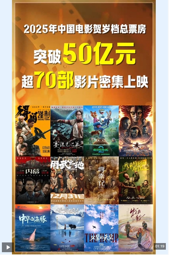 2025贺岁档电影总票房超53亿,位列中国影史贺岁档票房榜第二位。2025贺岁档显著的特征是类型全覆盖、题材多元化,以“内外兼修,多元并举”的鲜明姿态,为中国电影市场的强劲活力与无限潜力写下生动注脚。