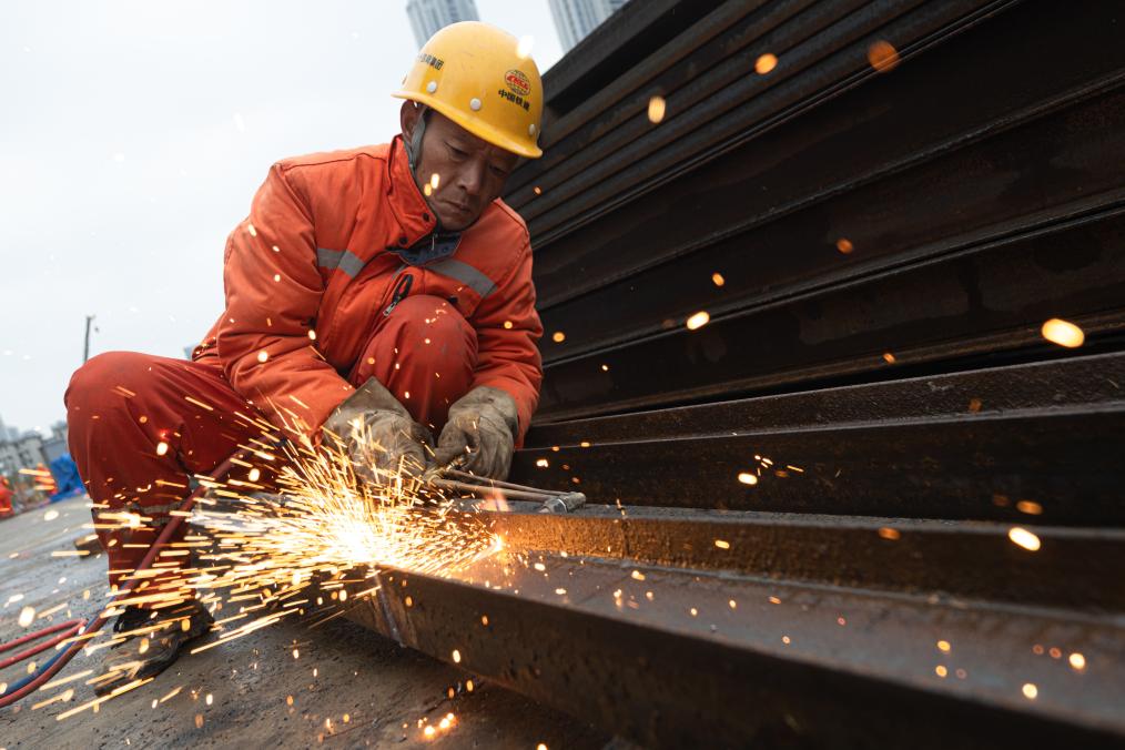2026年1月1日,中铁十四局工人在武汉地铁10号线一期工程建设现场施工。新华社记者 肖艺九 摄