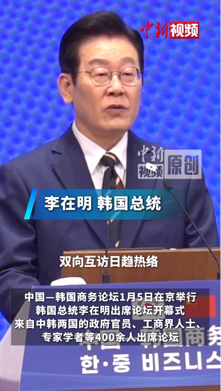 由中国贸促会、韩国大韩商工会议所共同主办的中国—韩国商务论坛1月5日在北京举行,正在对中国进行国事访问的韩国总统李在明出席论坛开幕式。来自中韩两国的政府官员、工商界人士、专家学者等400余人出席论坛。