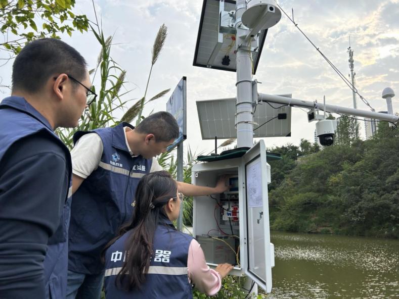 中兵卫通技术人员在龙涧溪水文监测站现场调试设备