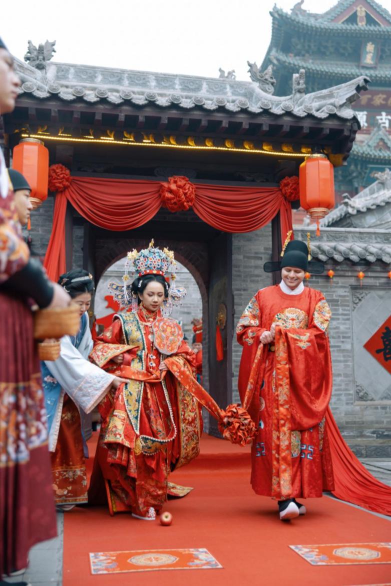 1月4日,一场中式传统婚礼在山西太原古县城举行。关于这段跨国婚姻的短视频被上传至网络后,迅速引发广泛关注。