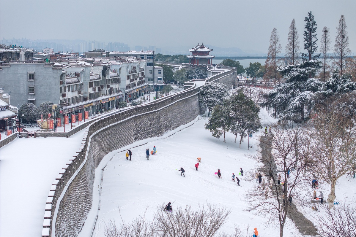 1月20日,湖北襄阳,雪后的襄阳古城银装素裹。杨东 摄