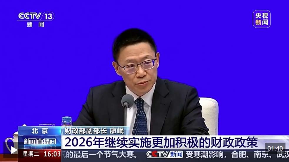 1月20日,国新办新闻举行新闻发布会,财政部相关负责人介绍发挥积极财政政策作用,推动经济社会高质量发展有关情况,强调将以更加积极的财政政策确保“十五五”良好开局。