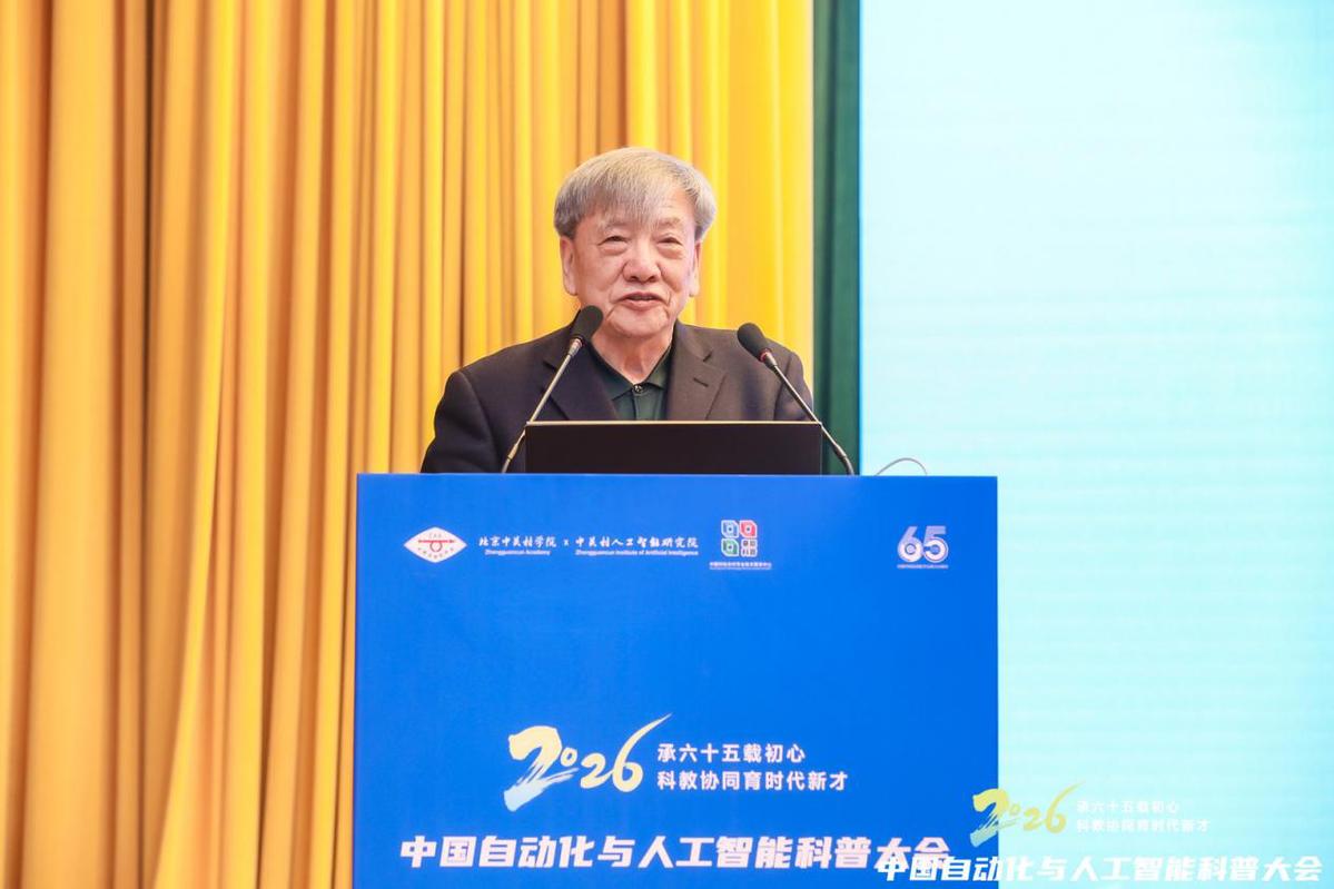 1月31日-2月1日,2026中国自动化与人工智能科普大会在北京西郊宾馆举行。作为庆祝中国自动化学会成立65周年的系列活动之一,大会以“承六十五载初心,科教协同育时代新才”为主题,秉承“服务学术、服务科技、服务社会”的宗旨,搭建起高水平的交流平台。大会吸引了600余位来自高校、科研院所、大中小学及企业界的专家学者、教育工作者与行业代表现场参会,近百万人次线上观看直播,共同见证这场行业盛会,为自动化与人工智能科普事业高质量发展注入新动能。
