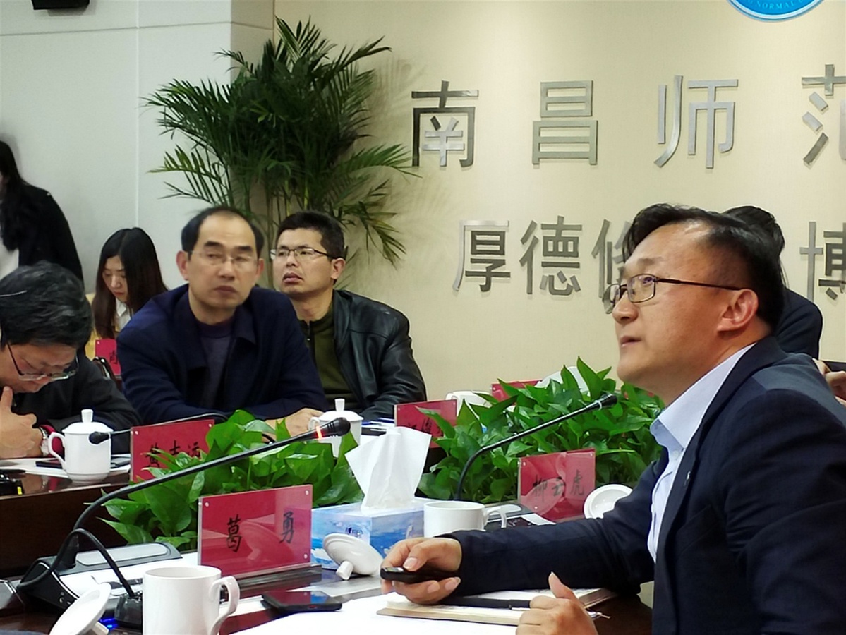 南昌师范学院、南昌市教育局、赣江新区经开区教体局、上饶市教育局、宜春市教育局的相关领导、专家和南昌中学的校长代表参加本次研讨会。南昌师范学院党委书记王金平的致辞,会议由南昌师范学院校长徐求真主持。
