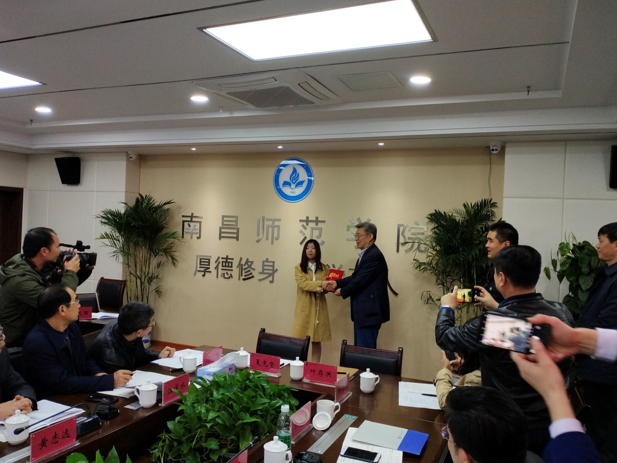 会上,徐善衍代表中国科普产学研创新联盟为南昌师范学院颁发了“中国科普产学研创新联盟科普基地校”牌匾,校长徐求真代表南昌师范学院受牌。