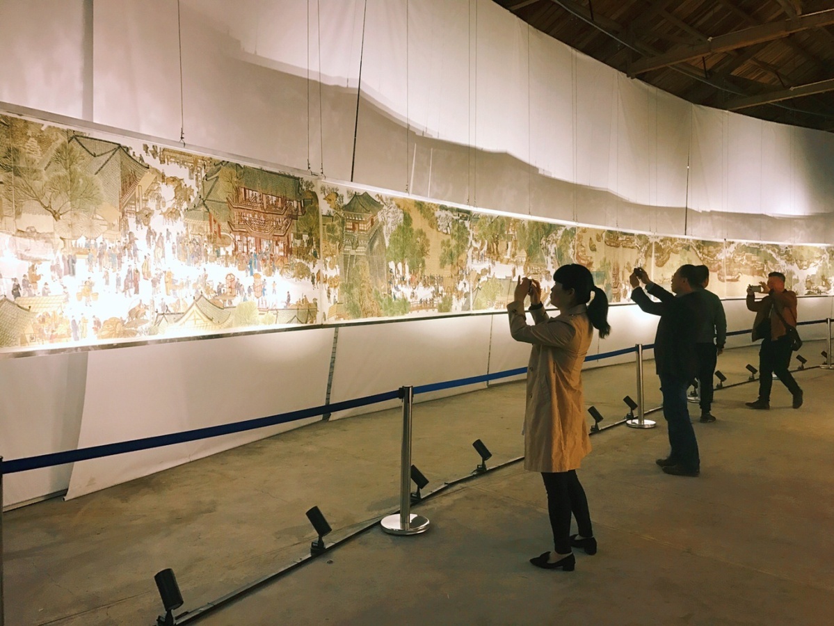 由工艺美术大师汪天稳、汪国庆设计的23.58米长、1.2米高,470余张牛皮制作而成的皮影版《清明上河图》