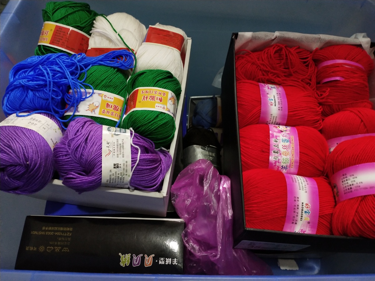 谢芝兰购买毛线为福利院的孩子们编制毛衣(章文摄)