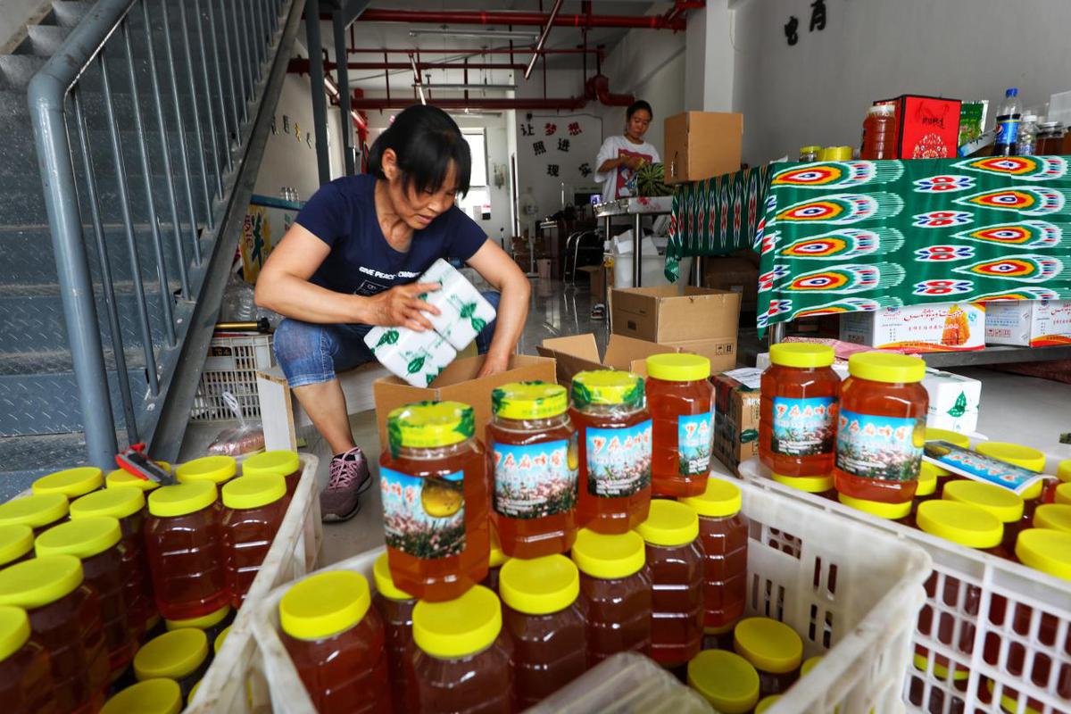 自古以来,罗布麻就被国人誉为“仙草”,蜜蜂采集它的花蜜酿造而成的天然优质成熟蜂蜜,口感醇正,有一股特有的芳香,具有很高的营养价值,是医食兼备、地地道道的绿色原生态蜂蜜。为打破“酒香巷深”的传统销售方式,助农增收,尉犁县电商协会会员与养蜂人合作,通过开网店、注册商标精细包装、招微商代理、网络营销推介等多种方式,打造地域品牌提升产品知名度,拓宽销售渠道。电商达人还走进养蜂场进行溯源直播,从养蜂酿蜜的各个环节到装罐、产品包装、贴标、打包发货全程进行网络直播,消费者可以直观地看到罗布麻花的生长情况、自然环境以及蜂场取蜜等,对农产品的品质、安全性更加放心。