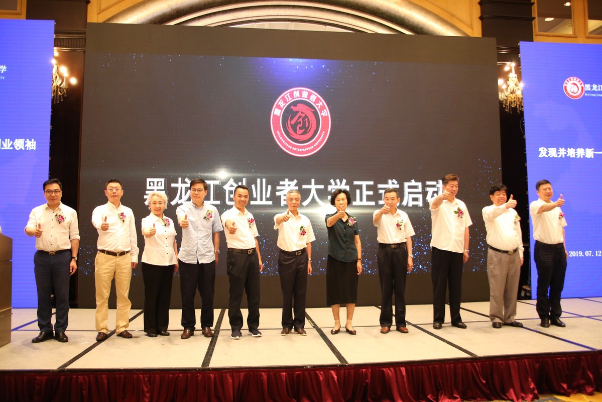 此外,会中还隆重进行了黑龙江创业者大学的启动仪式,12位主要领导嘉宾共同上台见证这一重要时刻;启动仪式上,黑龙江创业者大学首任校长刘世佳向与会嘉宾介绍了为什么创办创业者大学的初衷,他说:这是新时代创新创业的需要,是新时代龙江转型发展的需要,是新时代获取成功的需要。创业对每个创业者是一场人生价值的蜕变,是经济发展的新动力。黑龙江创业者大学有使命和责任让这部分动能可持续运转起来。所以,我们从省情和企业实际出发,从创业者认知着手,包括国际化的视野,实战化的落地,全方位的助力,自我塑造的“内功”,提高创业成功率和转型升级能力,降低创业成本和风险,让每一位坚守梦想的创业者因为大学的存在而获得无限发展的可能。