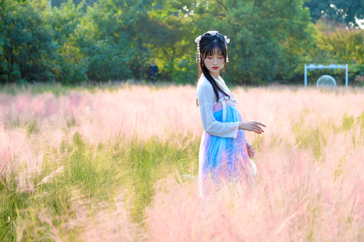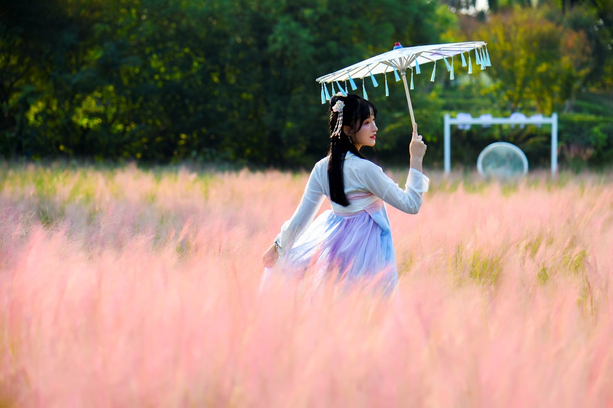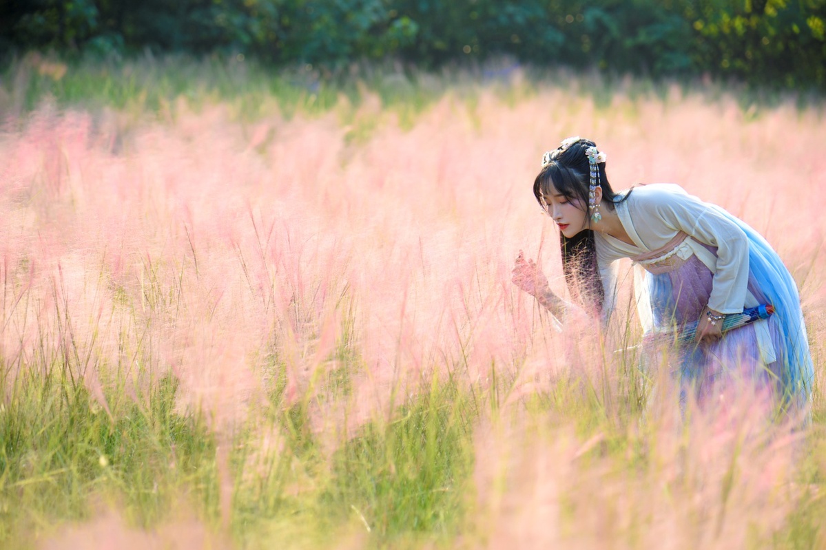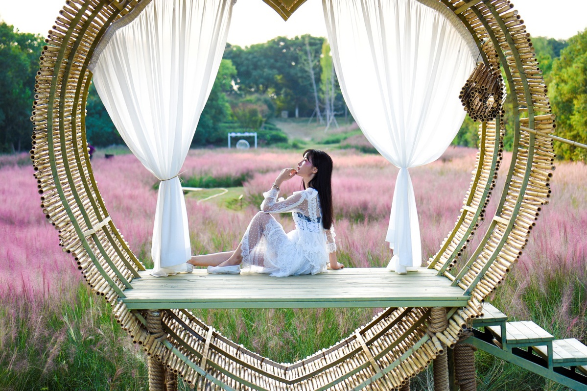 组图:2019年9月8日,凤凰沟景区的粉黛乱子草进入盛花期,如云似霞的花穗随风摇曳,如云如雾,如梦似幻,吸引小仙女来这里打卡(鲍赣生摄)