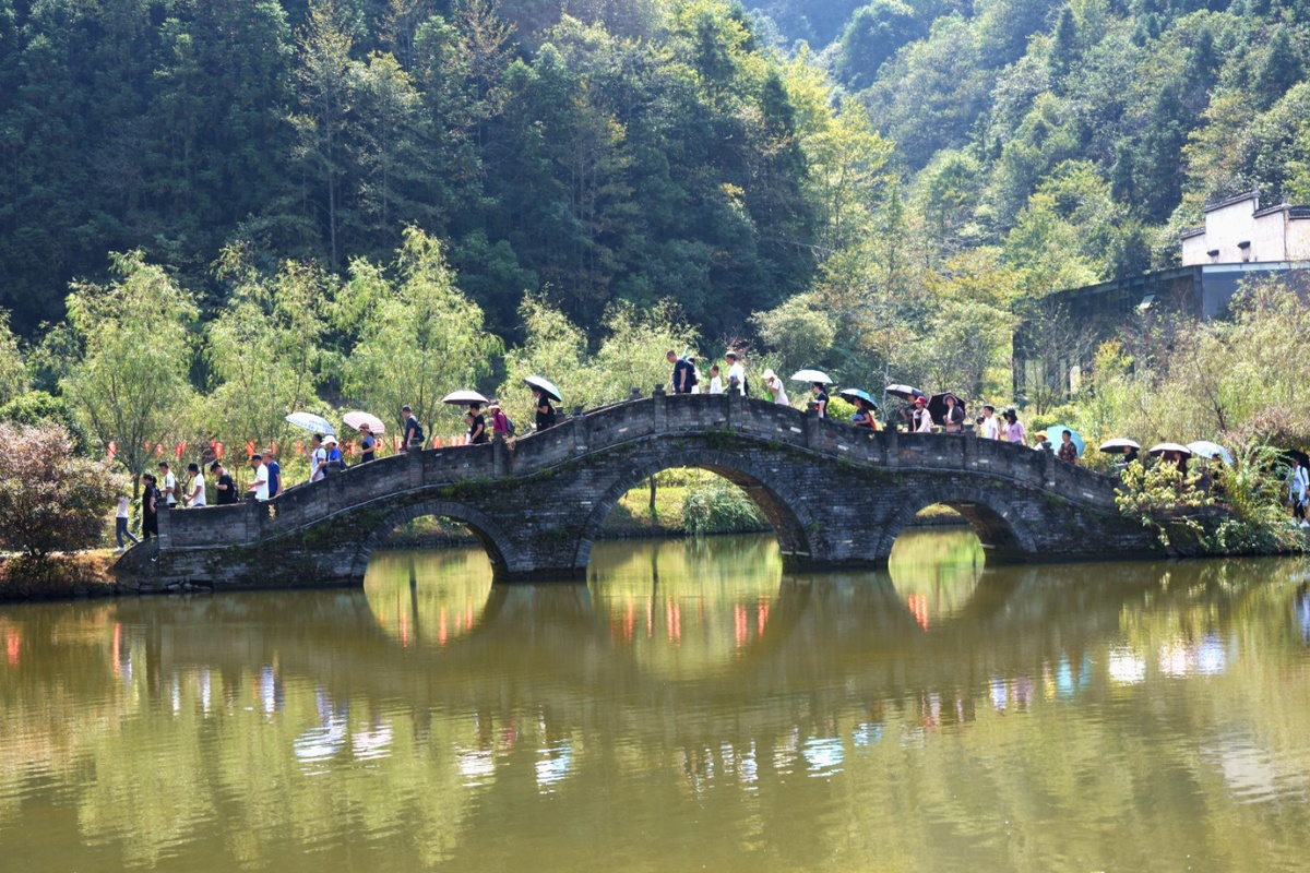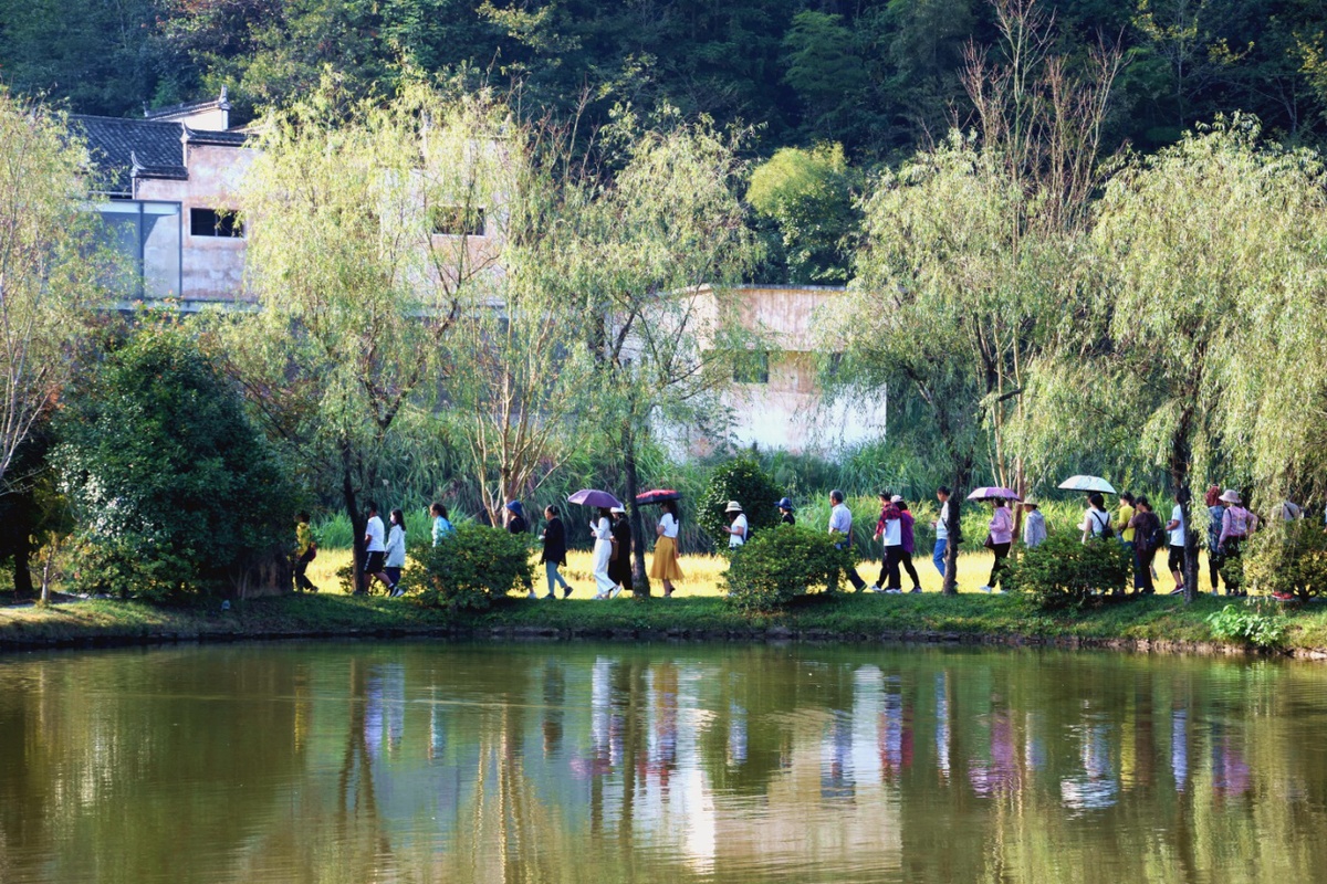 游客在婺源瑶湾景区旅游(程新德、江福民摄)