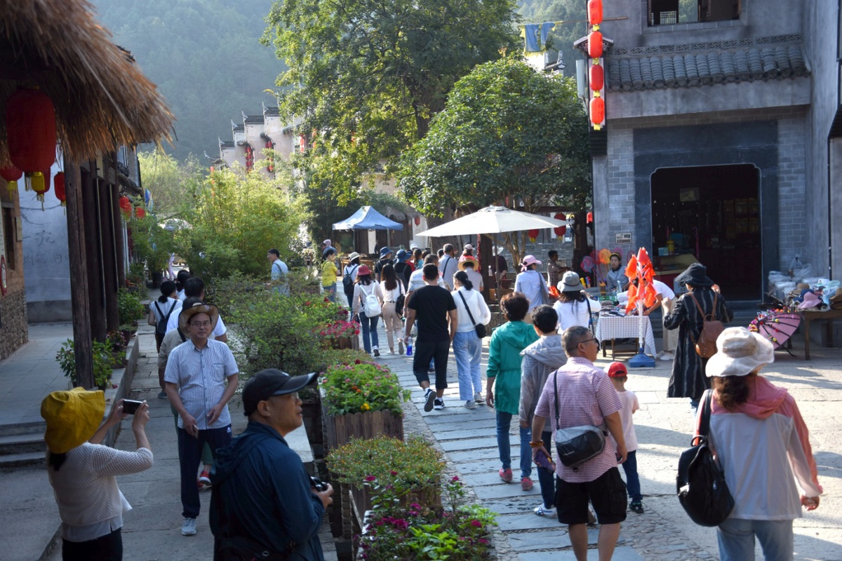 国庆长假第三日婺源瑶湾景区客流量大幅增长,处处人头攒动,一派热闹非凡的景象,进入了国庆游客“高峰模式”。据了解,10月3日,婺源瑶湾景区接待游客量近万人次,比去年同期增长15.5%。景区工作人员介绍,前天和昨天大部分人都在还路上或者在家观看规模宏大的新中国成立70周年大阅兵,而今天游客们陆续抵达旅游目的地,景区客流量较昨日增长非常明显。