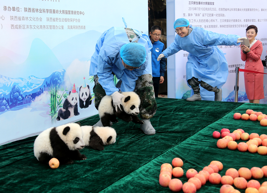 今年三只秦岭大熊猫的诞生,标志着陕西全面掌握了大熊猫人工繁殖技术,秦岭大熊猫繁育工作进入了新的阶段。截止目前,陕西省林业科学院秦岭大熊猫繁育研究中心共繁育成活大熊猫18胎20仔,饲养大熊猫26只,拥有全球唯一的圈养棕色大熊猫。