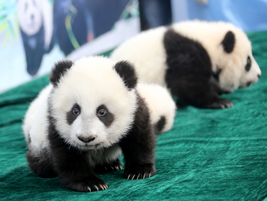 大熊猫珠珠龙凤胎宝宝的名字分别为“佳佳”、“园园”。 火炎 摄