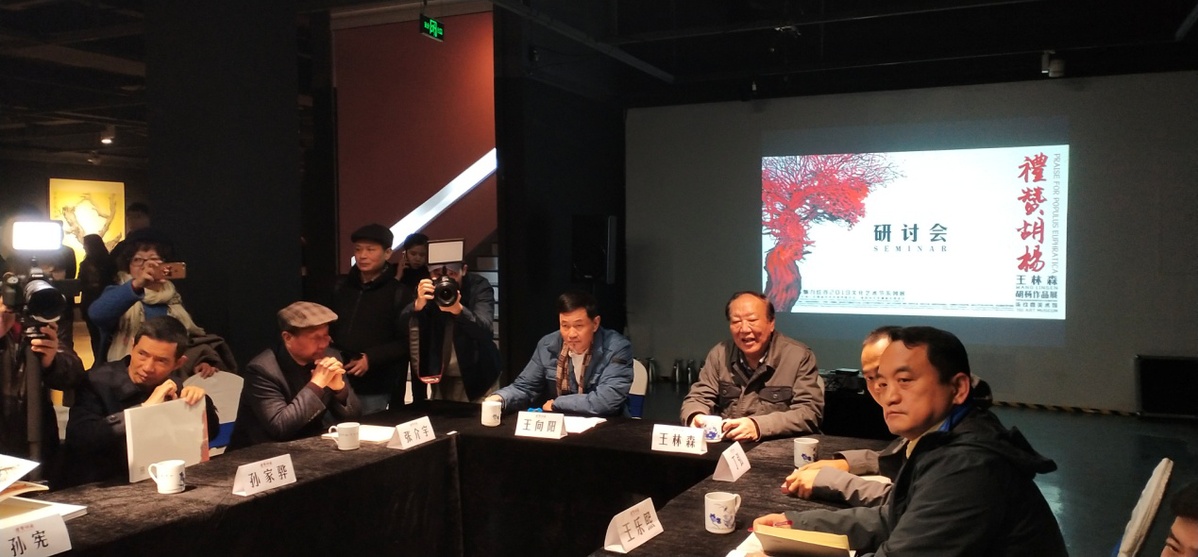 12月21日上午,由江西省文学艺术界联合会、南昌市红谷滩新区管委会主办,江西省美术家协会、(中国)云海画院、南昌市红谷滩新区文化局、红谷滩文学艺术界联合会、南昌791美术馆承办,香港文汇报、香港大公报、南昌市美术家协会、江西师范大学美术学院、南昌大学艺术与设计学院、北京胡杨礼赞书画院协办的“礼赞胡杨”——王林森胡杨作品展暨学术研讨会在南昌791美术馆举行。江西省美协主席王向阳致辞,江西省文联主席叶青致辞,展览艺术家王林森致答谢词,江西省政协原主席傅克诚宣布开幕。