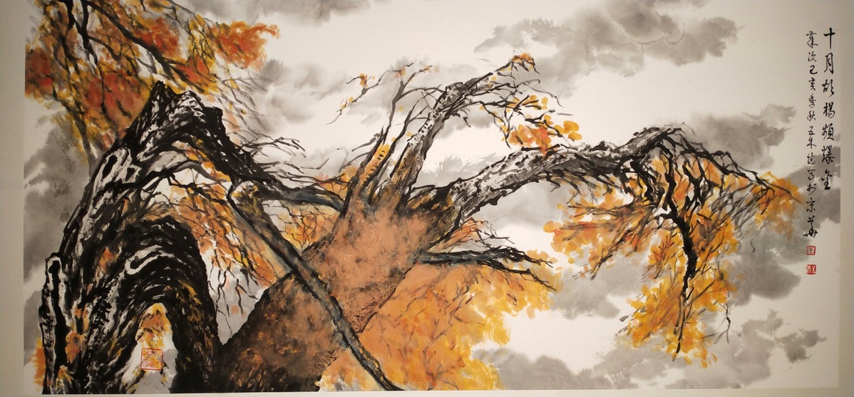王林森,笔名五木,中国美术家协会会员,(中国)云海画院荣誉院长, 江西省美术家协会名誉主席,江西画派研究会艺术顾问,南昌大学名誉教授;曾任江西省中国画学会会长等。其自幼酷爱美术,参加工作并走上领导岗位后,仍笔耕不辍,走出了一条转益多师、博采众长的路子。王林森主攻国画山水,尤以画彩墨云山和胡杨见长,作品大气磅礴,遒劲洒脱,墨厚色亮。从领导岗位退下来后,陆续参加省内外一些画展,并相继在中国国家博物馆举办个展,应邀参加法国巴黎卢浮宫东西方国际艺术展,在美国举办彩墨山水加州巡回展,颇受业内外人士的关注和赞赏。(王健摄影)