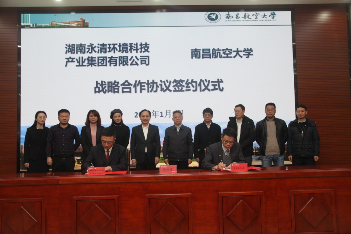 2020年第一个工作日,南昌航空大学与湖南永清环境科技产业集团有限公司的战略合作协议签约仪式在学校逸夫楼报告厅举行。昌航校长罗胜联、副校长罗旭彪,党政办、科技处、环境与化学工程学院负责人及师生代表100余人参加活动。会前,罗胜联亲切会见了永清集团董事长刘正军一行。