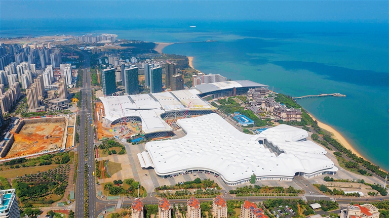 海南国际会展中心一、二期项目(下半部为一期)。海南日报记者 李天平 摄