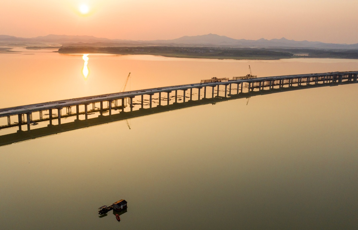 4月9日,位于江西省九江市都昌县境内的新妙湖特大桥顺利合龙,大桥主体结构全部完工。