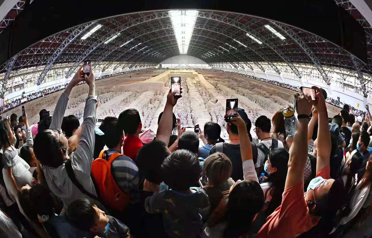 据统计,全省对外开放文博单位共接待观众596万人次。其中秦始皇帝陵博物院共接待观众299342人次,达到了疫情之前2019年四天小长假单日参观人数的92.1%。