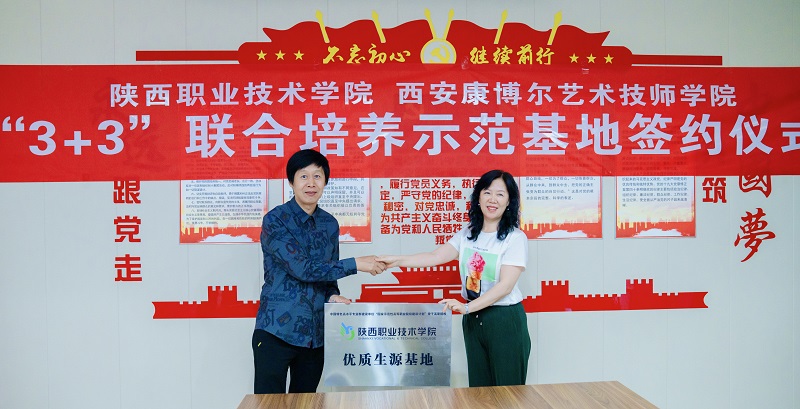 7月21日,陕西职业技术学院与西安康博尔艺术技师学院举行“3+3”联合培养示范基地签约仪式。陕西职业技术学院党委委员、党委组织部部长张颖娜,西安康博尔艺术技师学院院长栗红强出席签约仪式,两院相关负责人见证签约仪式并展开深度合作交流。