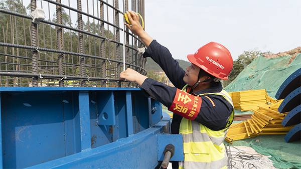 像晋艳如一样,柳梧铁路建设者们选择坚守的还有很多人,来自广西的90后小伙张晟榕就是其中一位。在金田紫荆河特大桥施工现场,他正忙着和同事们一起通对桥梁墩身测量放样。眼下正是施工的关键节点,张晟榕也主动放弃了“五一”假期与家人团聚,与同事们一起赶工期、促生产,以自己独特的方式庆祝属于劳动者的节日。