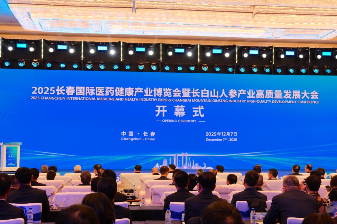12 月 7 日,2025 长春国际医药健康产业博览会暨长白山人参产业高质量发展大会在东北亚国际博览中心启幕,为期三天的展会以“共赴产业赋能之约,共绘高质量发展蓝图”为主题,汇聚全球医药健康产业资源,搭建展示、交流与合作的高端平台。
