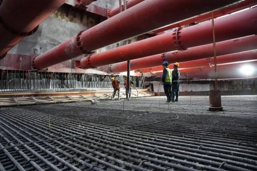 施工中,项目团队调配50T履带吊、52m天泵等专业设备,组建钢筋、模板、混凝土专业施工班组协同作业;项目管理人员全程旁站监督,严格把控混凝土配合比、坍落度及振捣质量,确保施工全过程可控。经过整日连续奋战,底板混凝土浇筑顺利完成,各项指标均符合设计及规范要求。