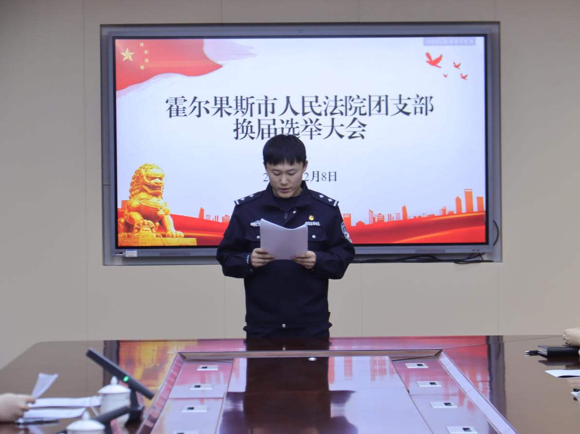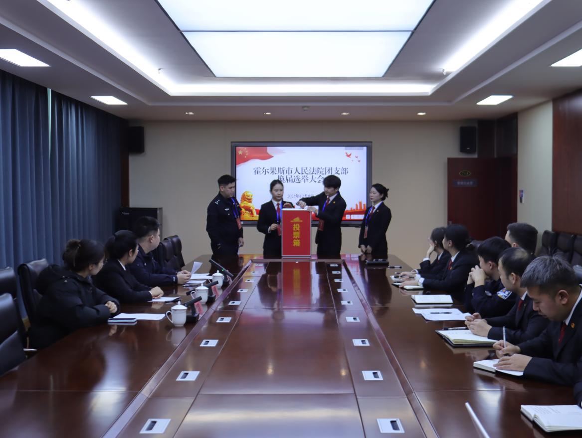 为纪念“一二·九”抗日救亡运动90周年,以爱国主义与奋斗精神为引领,扎实推动青年工作传承红色基因、焕发时代活力,夯实基层团组织建设,新疆伊犁霍尔果斯市人民法院团支部于2025年12月8日召开换届选举大会暨“传承‘一二·九’精神,凝聚青春新力量”主题团日活动,共青团霍尔果斯市委员会基层组织建设负责人徐会茹同志,市法院党组成员、政治部主任魏亚南同志列席本次活动。