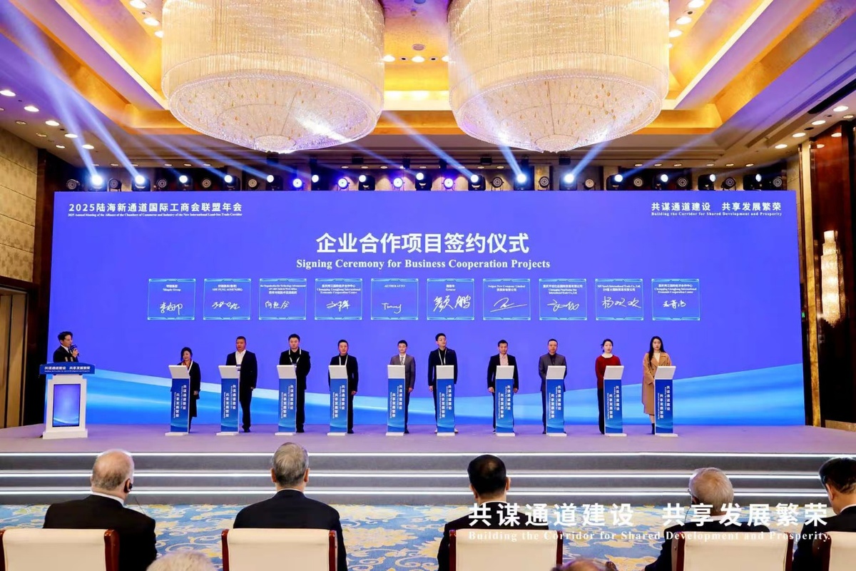 四是推动设立“陆海新通道联盟商事法律服务平台”,举办启动仪式,整合专业力量为重庆企业出海保驾护航。五是达成数字化成果,联盟数字化平台于2025年5月正式上线,截至目前,平台已累计上线1025家企业(其中:境外企业223家),上架商品6189个,累计订单数10928笔,实现交易金额211.91亿元。同时,年会开幕式上还发布了“陆海联线”联盟信息共享平台,该平台将不断深化提升联盟成员间的信息互通与交换。六是启动第四届中国国际供应链促进博览会“重庆先进制造业供应链”展区企业招募,目前已邀请到赛力斯、隆鑫通用动力、金山科技等10家我市具有代表性的制造企业签约参展。这些成果进一步夯实了区域协作基础,为西部陆海新通道辐射全球127个国家及地区的581个港口增添了合作动能。