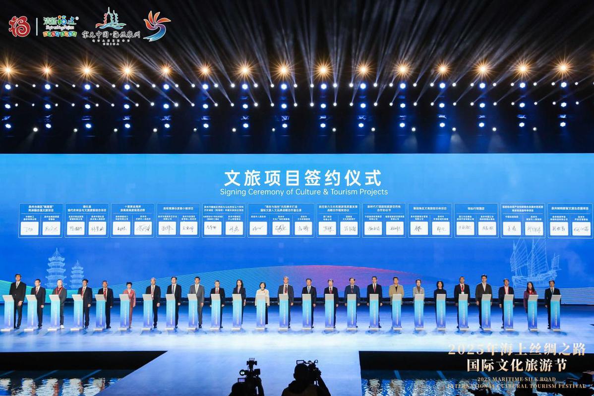 2025年海上丝绸之路国际文化旅游节开幕式上文旅合作项目签约现场。(主办方供图)