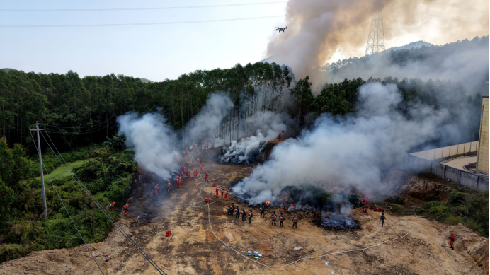 此次演练模拟诏安县梅洲乡梅洲村群众上山违规用火引发火情,因荒地可燃物富集、现场风力较大,火势迅速突破控制,情况十分危急。漳州市森林防灭火指挥部第一时间启动应急响应机制,按照早期火情预警与扑救、中期森林火情处置、火灾全力扑救及后续情况处置等预设科目,统筹组织专业应急力量开展灭火救援行动。