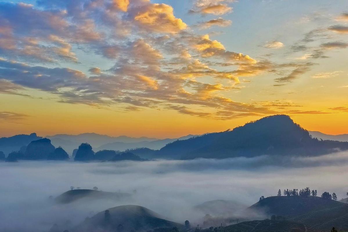 12月17日,武夷山国家公园云海翻涌,朝霞鎏金,峰峦似蓬莱浮于云端。(邱汝泉 摄)