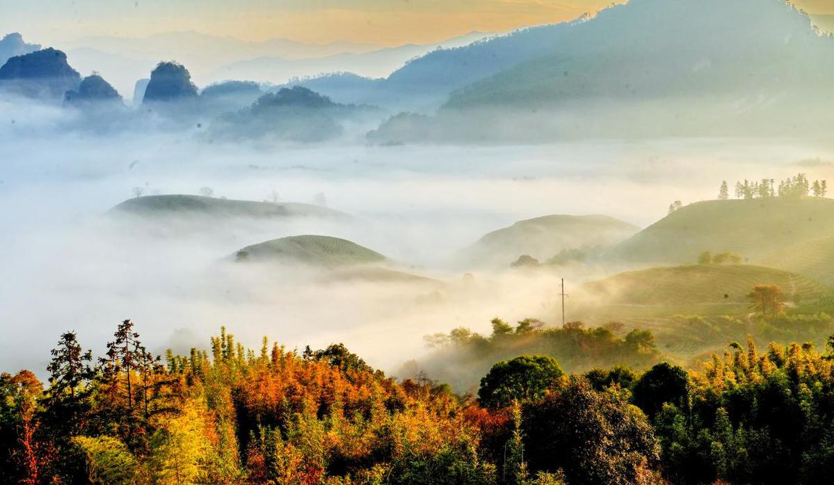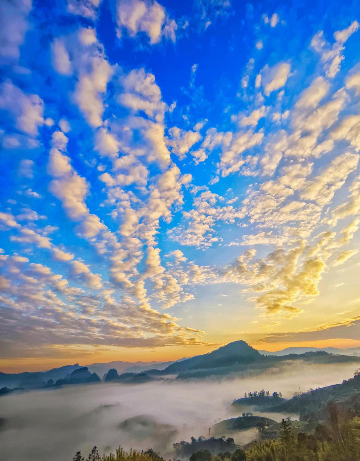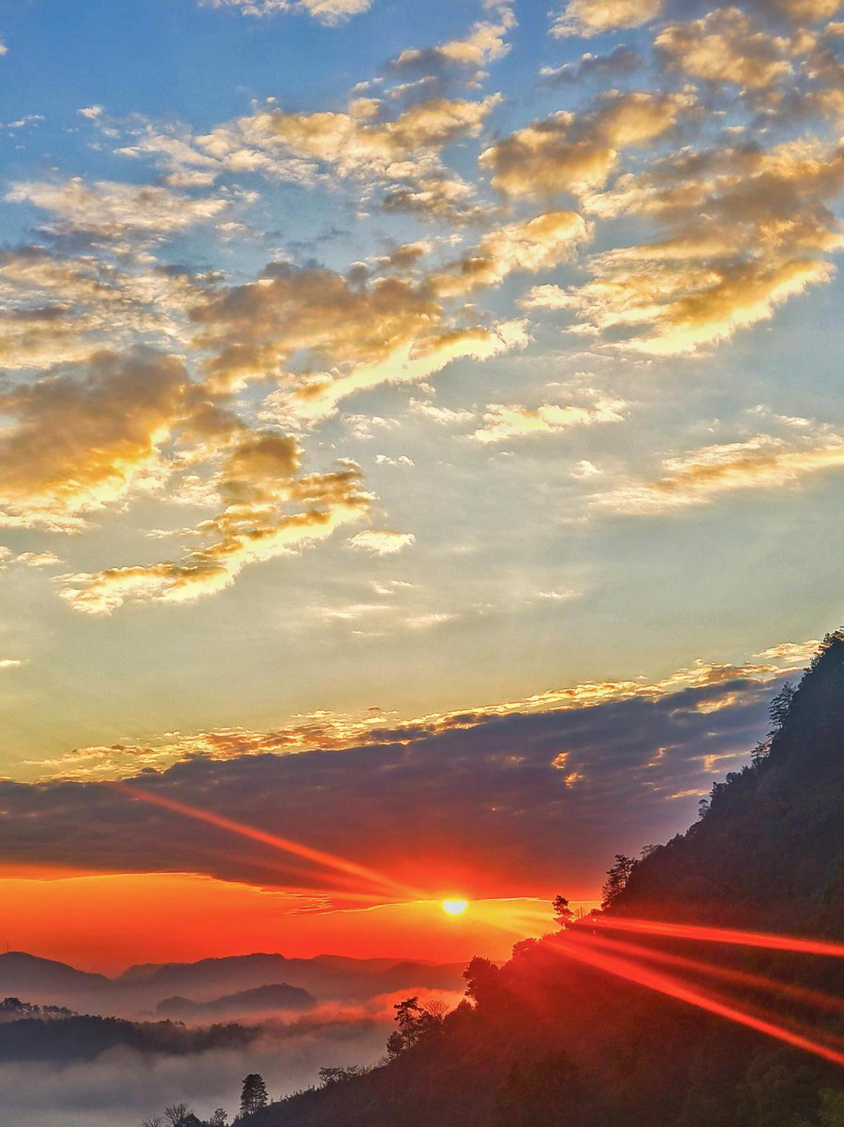 天刚破晓,武夷山国家公园的群山还浸在浅淡的晨雾里,一缕缕朝霞率先撕破天际,将金红的柔光泼洒在连绵起伏的峻岭之上。云海像是被打翻的棉絮,在山谷间缓缓涌动,时而漫过青黛色的峰尖,时而露出嶙峋的岩骨,峰峦在云雾里时隐时现,宛如仙境里的蓬莱。朝霞的暖色晕染在云海上,让那片白茫茫的云海镀上了一层鎏金,与红绿相间的林木、褐红的丹霞岩壁相映成趣,山风掠过,云海翻涌,霞光流转,整座山林都浸在这幅流动的、壮丽无比的画卷里。