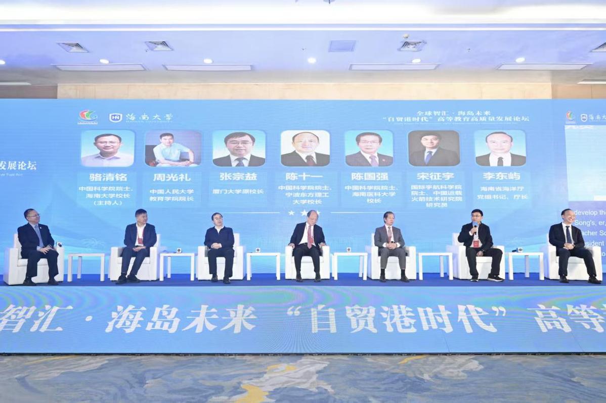 圆桌对话环节由骆清铭主持,中国科学院院士、宁波东方理工大学校长陈十一,中国科学院院士、海南医科大学校长陈国强,厦门大学原校长张宗益,中国运载火箭技术研究院研究员宋征宇,中国人民大学教育学院院长周光礼,海南省海洋厅党组书记、厅长李东屿围绕“自贸港封关运作背景下高校的战略定位”“复合型人才培养体系建设”“科教融汇与产教融合模式”“高校制度改革路径”“高等教育服务区域发展能力提升”等议题展开深入交流与探讨。